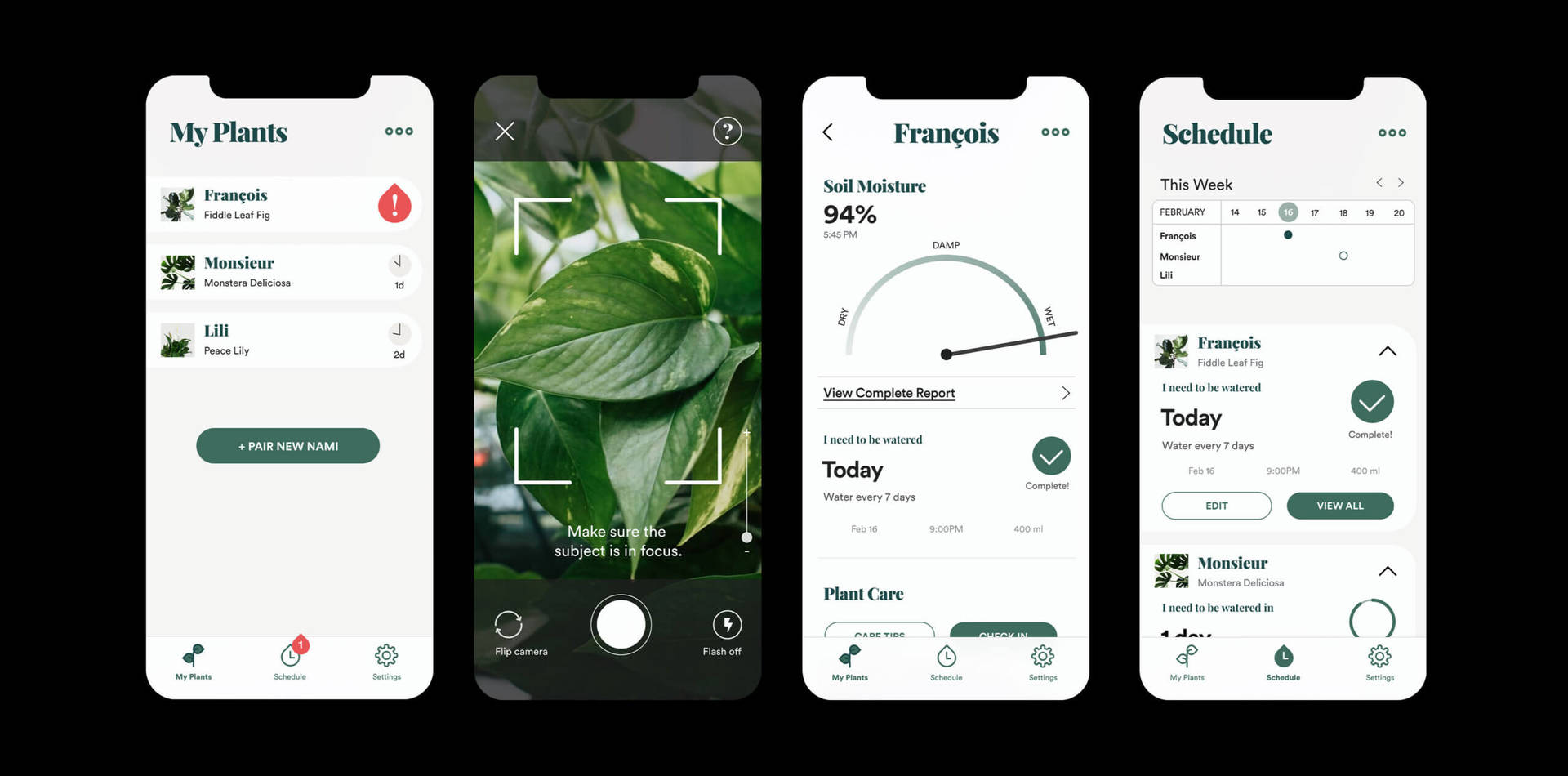 Nami is an app that connects to a small water reader to help you take care of your plants and keep them happy. It tracks the soil moisture, creates a customized watering schedule based on the specific plant and its current moisture, it provides tips on how to care for your plants.