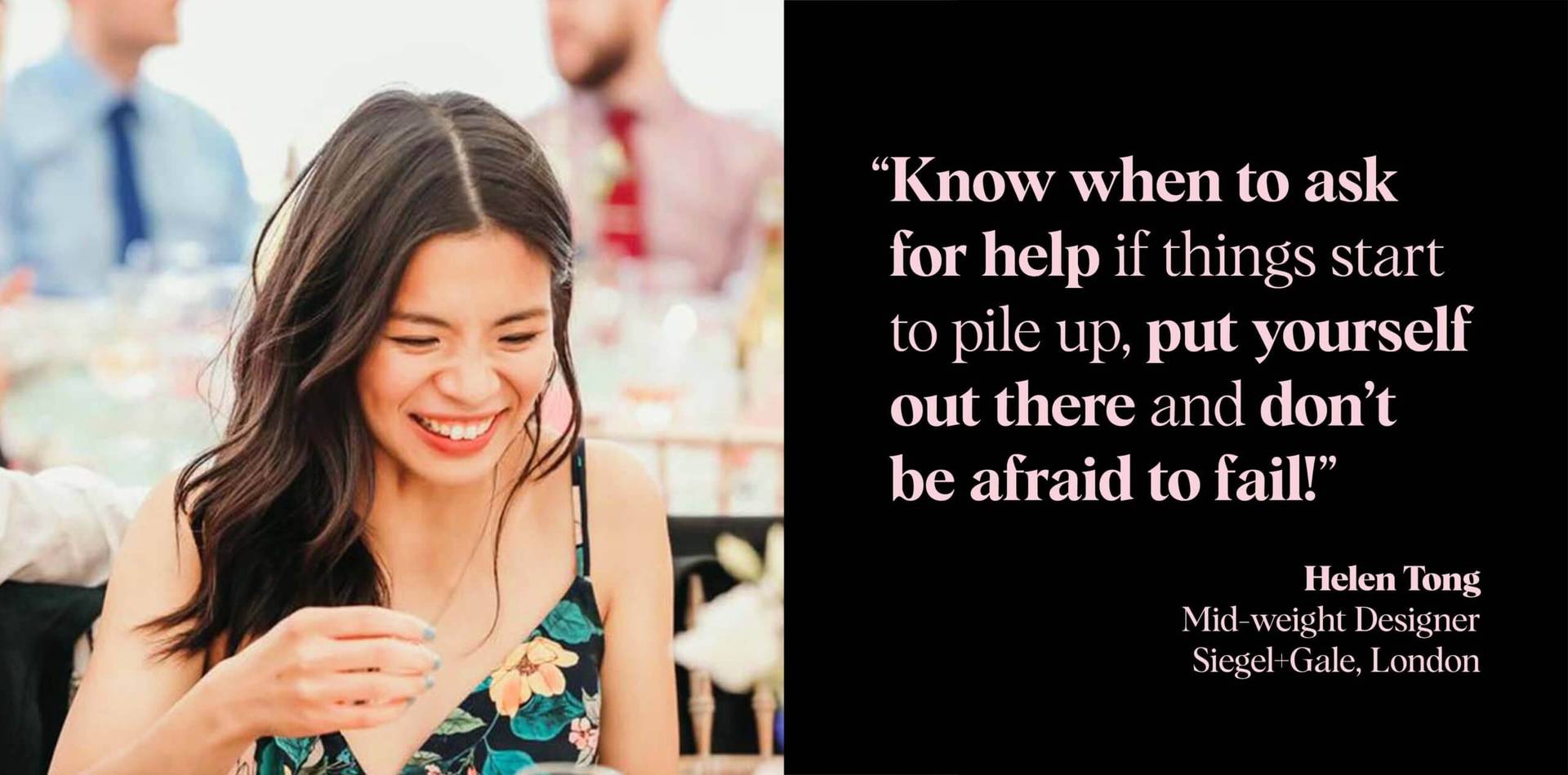 Helen offers the following advice for anyone feeling overwhelmed: “Know when to ask for help if things start to pile up, put yourself out there and don’t be afraid to fail!” She elaborates by saying, “If you start putting forward ideas that you’re not sure are good enough, showcasing unpolished work, or reaching out to people who you admire – chances are that things usually turn out much better than you expect!”
