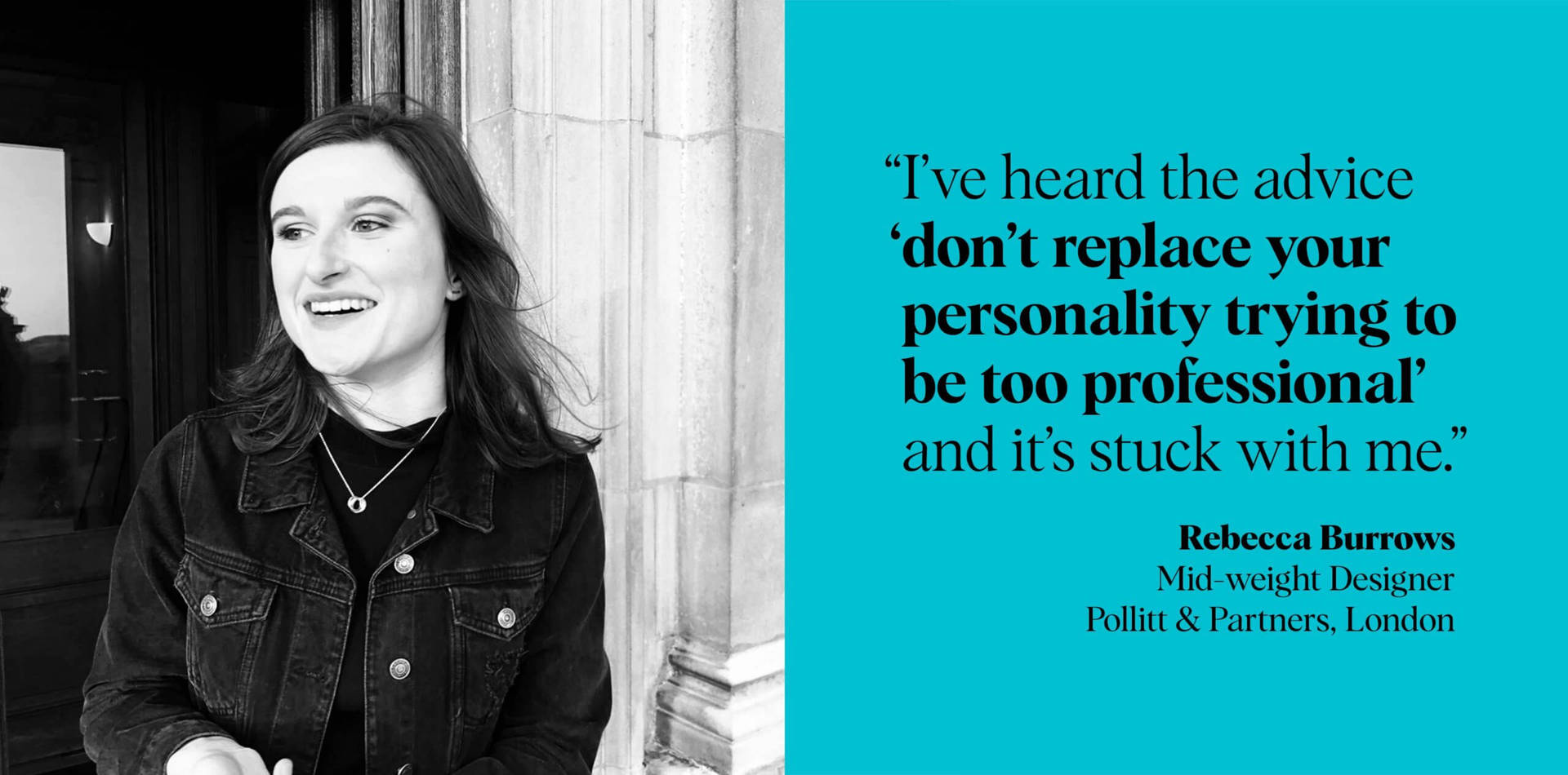 Entering the industry straight out of university presents many transitional ‘moments’, with the jump from being in control of your own creative work to working for others perhaps being one of the biggest. This is something that Rebecca Burrows, Designer at London-based studio Pollitt & Partners, experienced first-hand, “I’ve had to get used to compromising a bit. Sometimes what the client wants, doesn’t align with what you think is best.” But that isn’t to say that it inhibits creativity, especially when you’re surrounded by a multi-level team. “I work with quite a lot of senior designers and creative directors who offer support when we’re working on a project together. Reaching out for advice from other connections you have within the industry also helps particularly when you’re just starting out.”