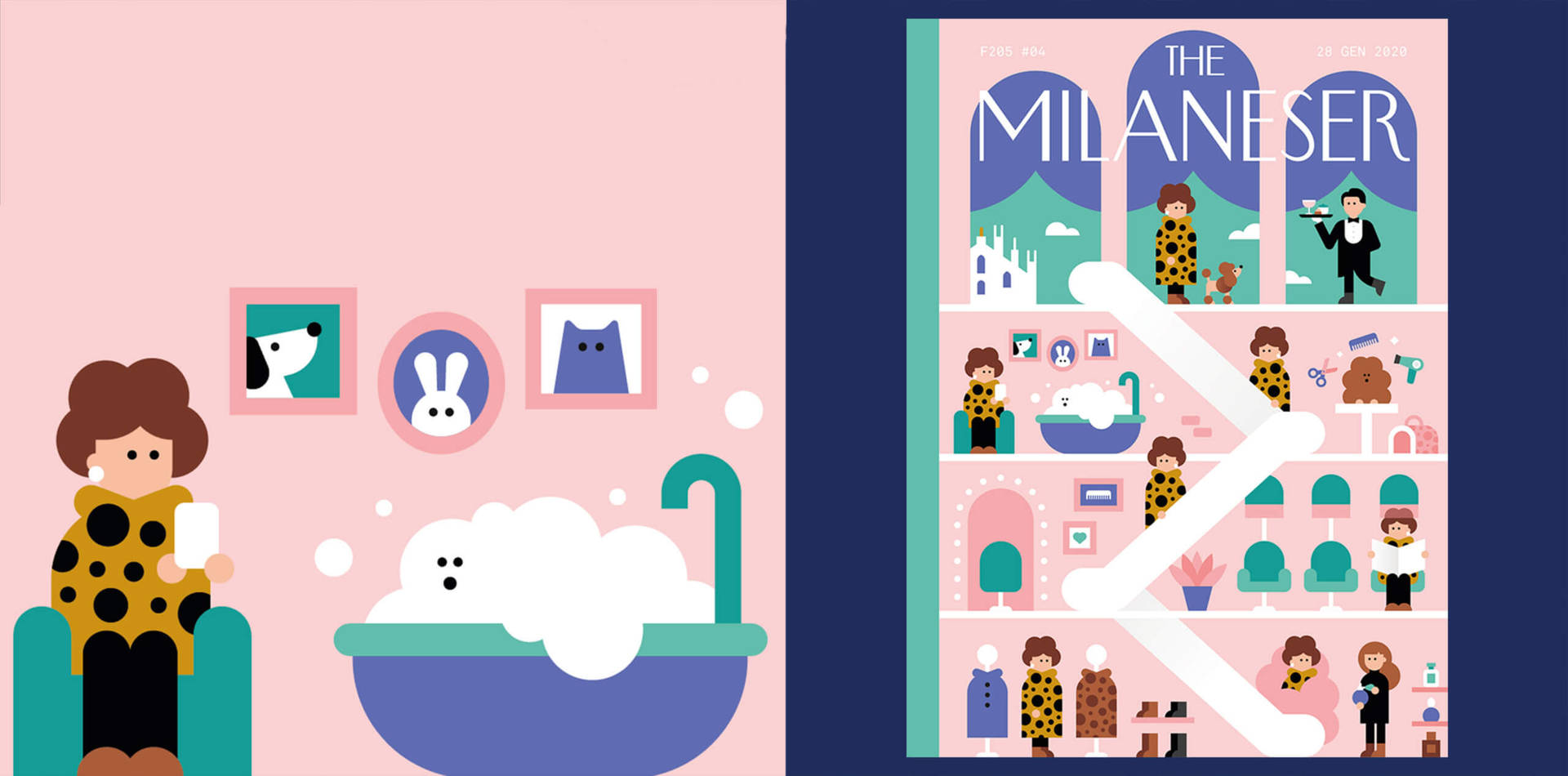 The Milaneser: The Milaneser is an imaginary magazine, a collective artistic project whose aim is to portray the city of Milan through the illustrations of 52 artists, while also paying tribute to the New Yorker. For my cover, I chose to celebrate humorously the epitome of the old, bourgeois Milan: the Sciura, a name that identifies a very specific type of upper-class elderly woman from the center of the city.