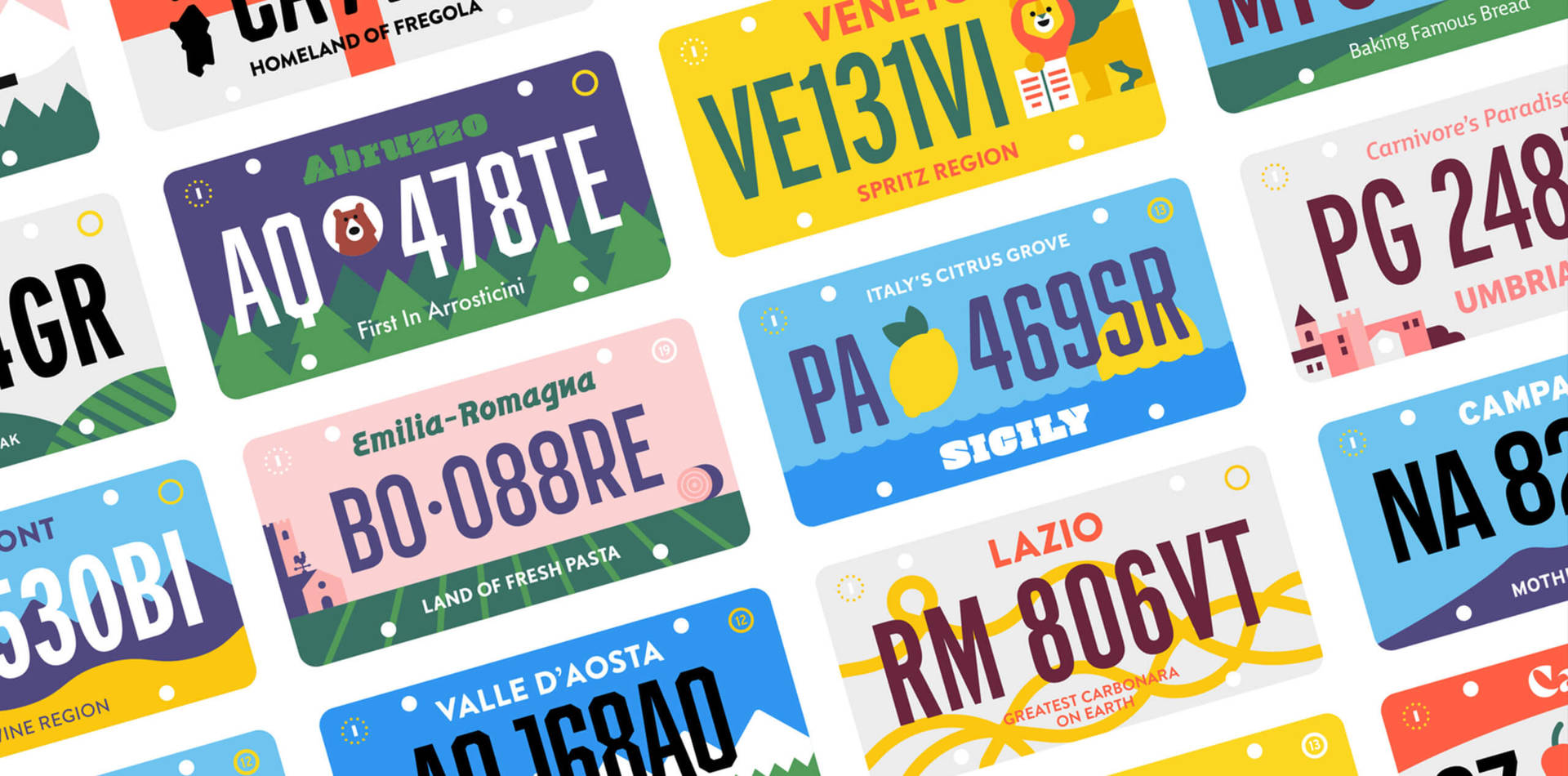 Italian Plates: What would Italian car plates look like if they were designed like the American ones? With this project I wanted to visualise these ’dream plates’; each one of them is a tribute to an Italian region and  its culinary traditions.