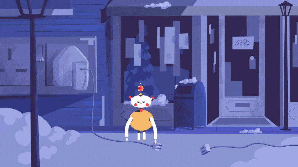 Christmas: For this shot it was important for me to apply weight in the animation and, at the same time, still be funny and have personality. I was responsible also for the character design. Environment design Illustrated by Alexandra Francis.