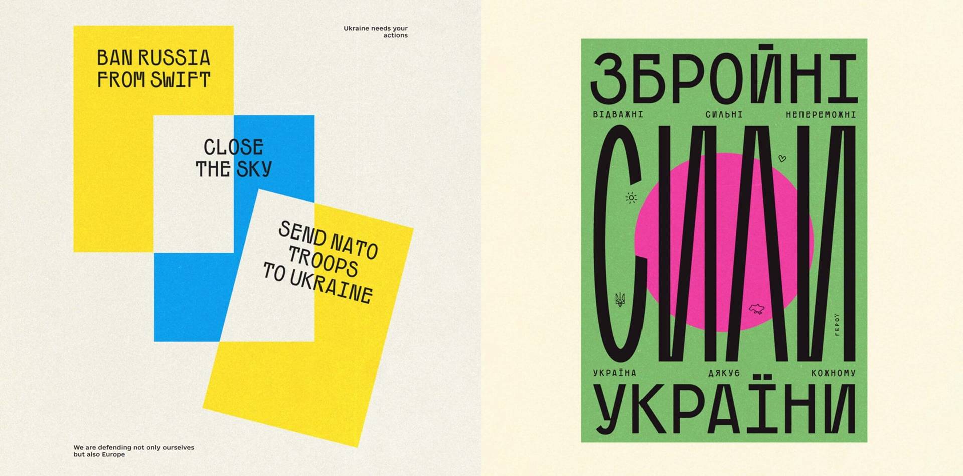 I recommend that you take a look at posters created by Ukrainian designers collected by the team from the Projector Creative & Tech Online Institute. These posters can and should be shared and distributed. You can use, print and share them for free: