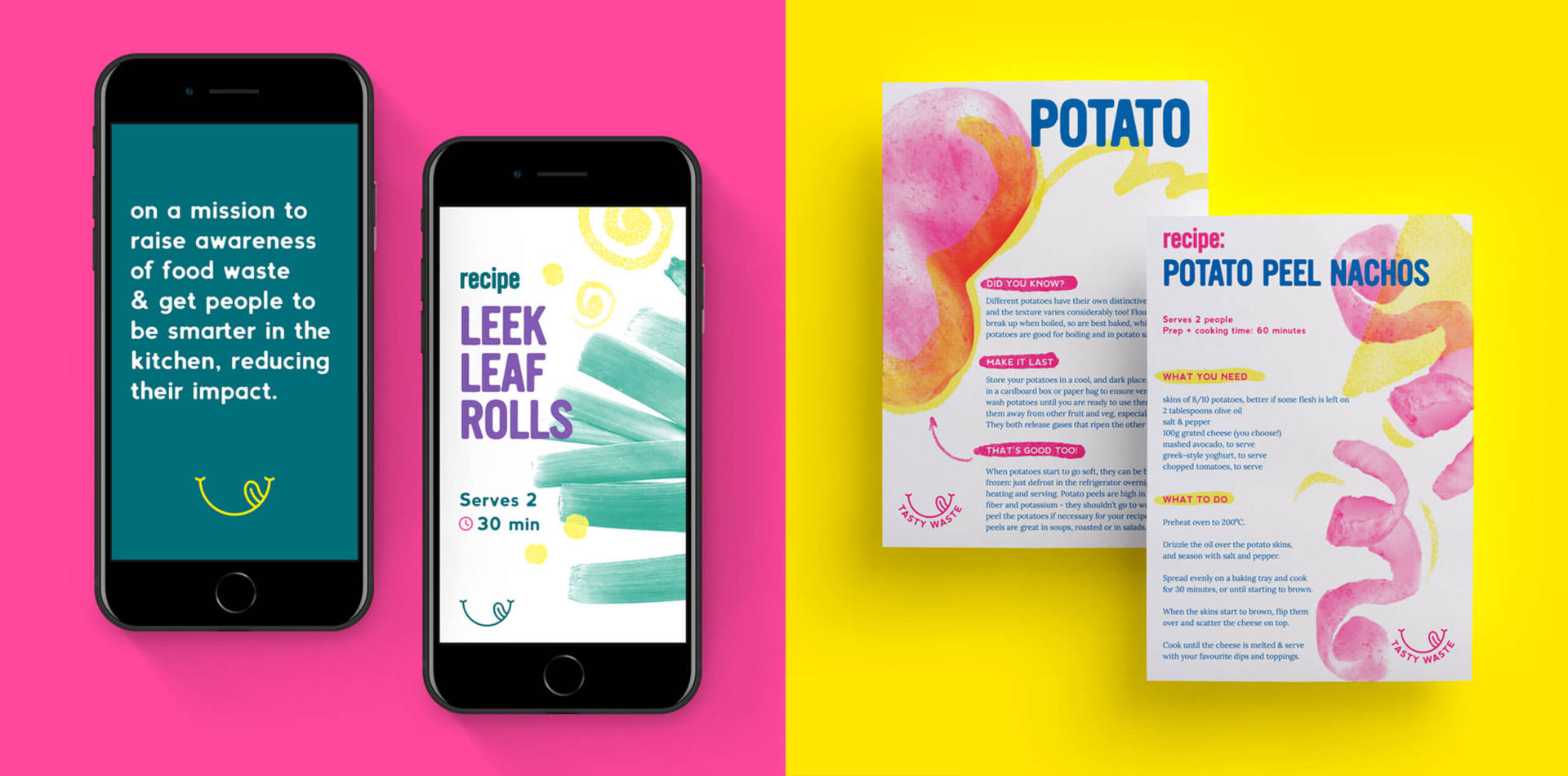 Over the past year, lockdown has given Laura time to reflect on the kind of work she wants to create and what’s important to her. Concerned about the amount of food that gets wasted, she conceived a series of beautifully designed recipe cards called Tasty Waste. The project encourages people to use parts of food they would otherwise throw away, thereby raising awareness of waste and providing free recipes to help people reduce their environmental impact: “I believe that as a designer I have an obligation to create work that has a positive impact on others and believe that projects based on meaningful engaging concepts with a personal element are the strongest.”