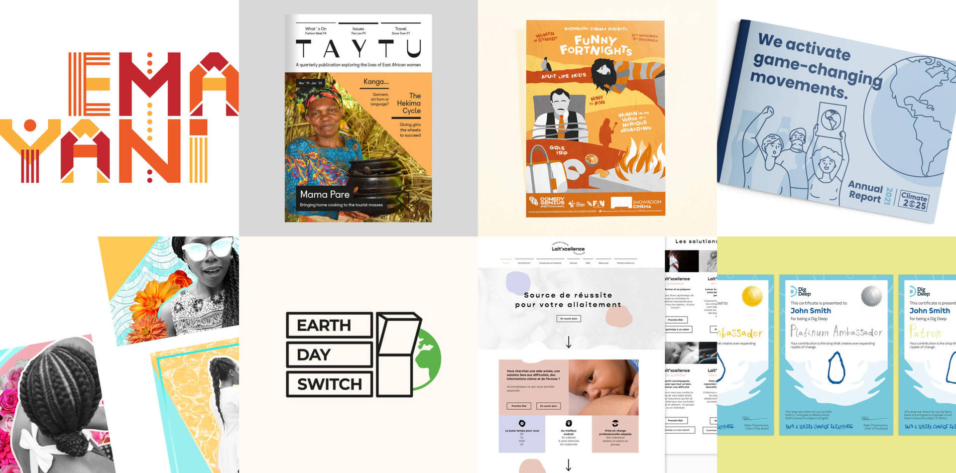 In 2017 I bit the bullet and went freelance. Gradually my niche started to emerge and now I’m proud to work exclusively with the third sector. I mostly deal with branding and have worked with a whole host of organisations, covering climate justice, water and sanitation, women’s empowerment, ethical tourism, education, health and well-being, and arts and culture. It’s an incredible feeling knowing that my work is having a positive impact and I’m finally really clear on what my values are, and the kind of work that aligns with them.