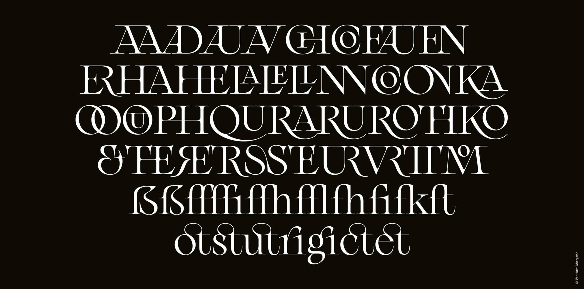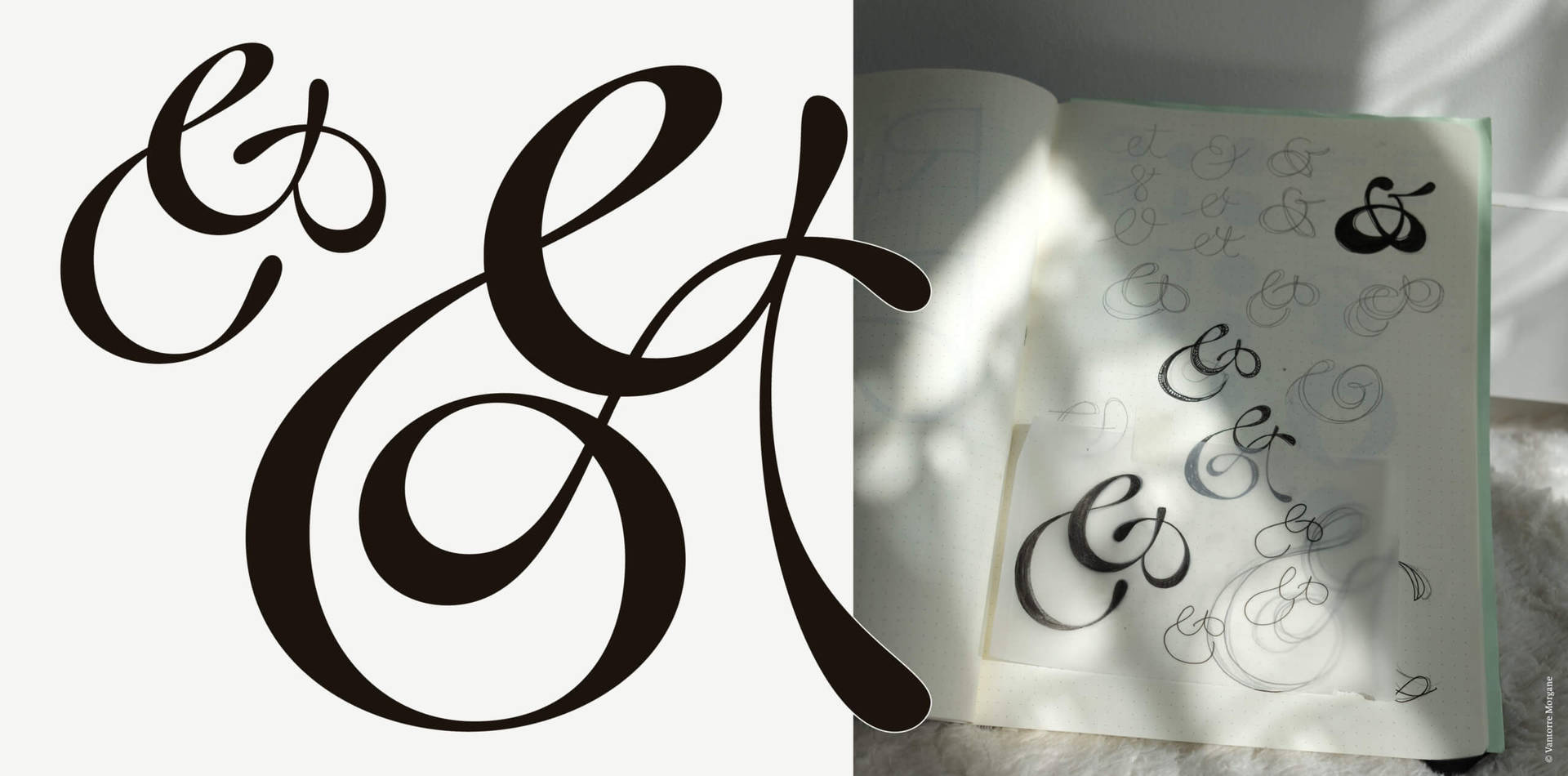 If I were to describe my approach to type design, I would say it is one of rigor and meticulousness. First, I place great importance on research because I need to understand the essence of the subject or aesthetic I am trying to achieve. I then draw in my sketchbook before completing the visual research, if necessary, through my books or image bank. Then it’s time for the software where, from the vectorisation of the drawing to the export, I carry out each step with precision. In the end, my objective is to be fully aware of what I am doing so that my design is not only beautiful but also well-crafted and usable by others.