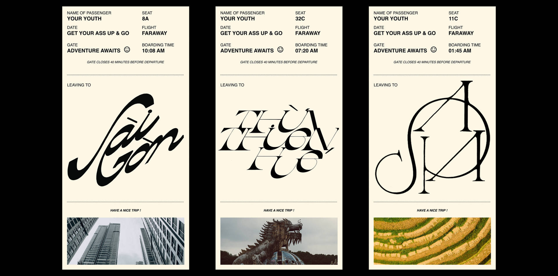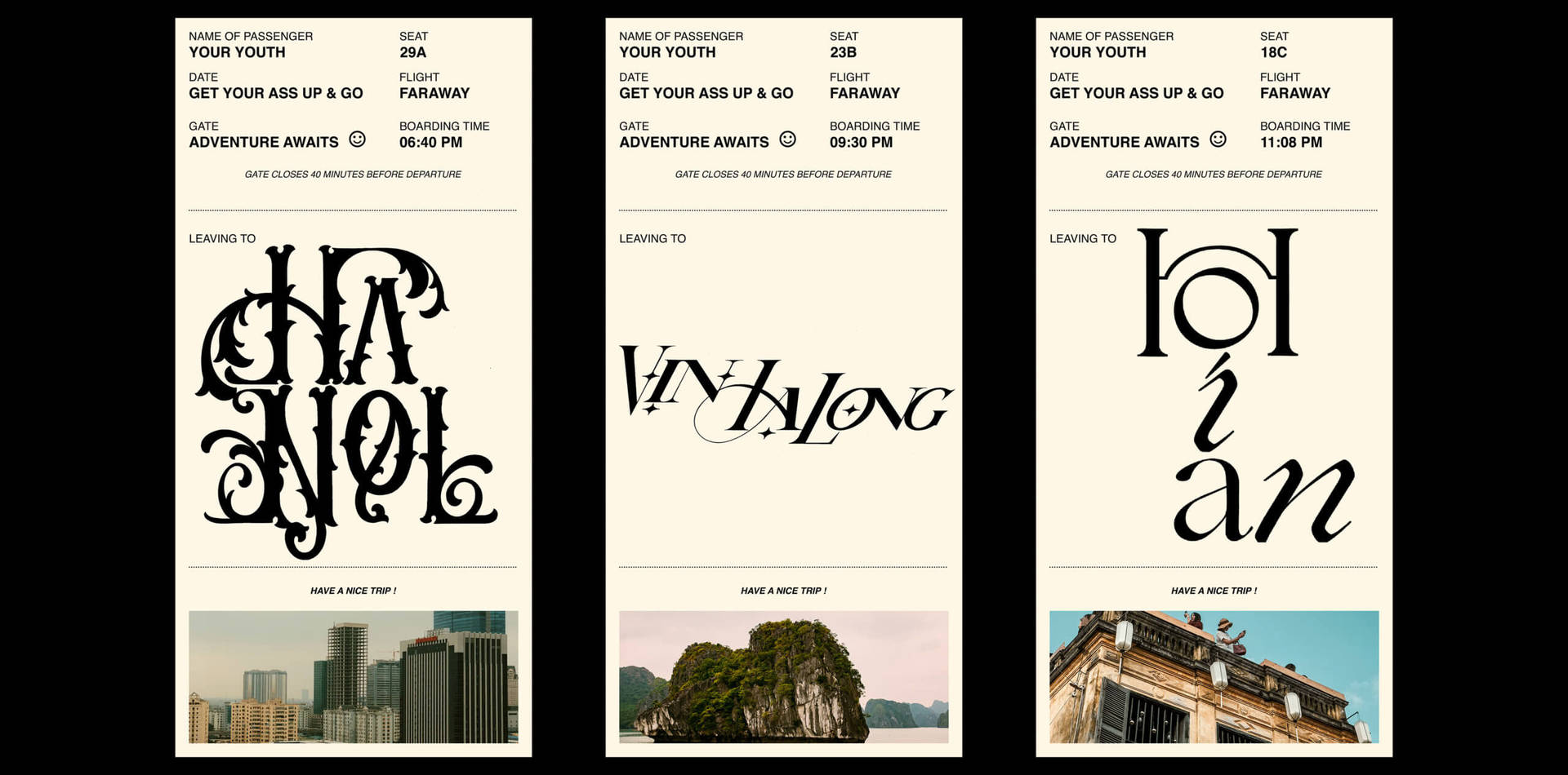 “Places in Vietnam – is a project about famous tourist destinations in Vietnam. At the beginning of the project I practiced creating ligatures and decided to focus on developing ligature pairs.”