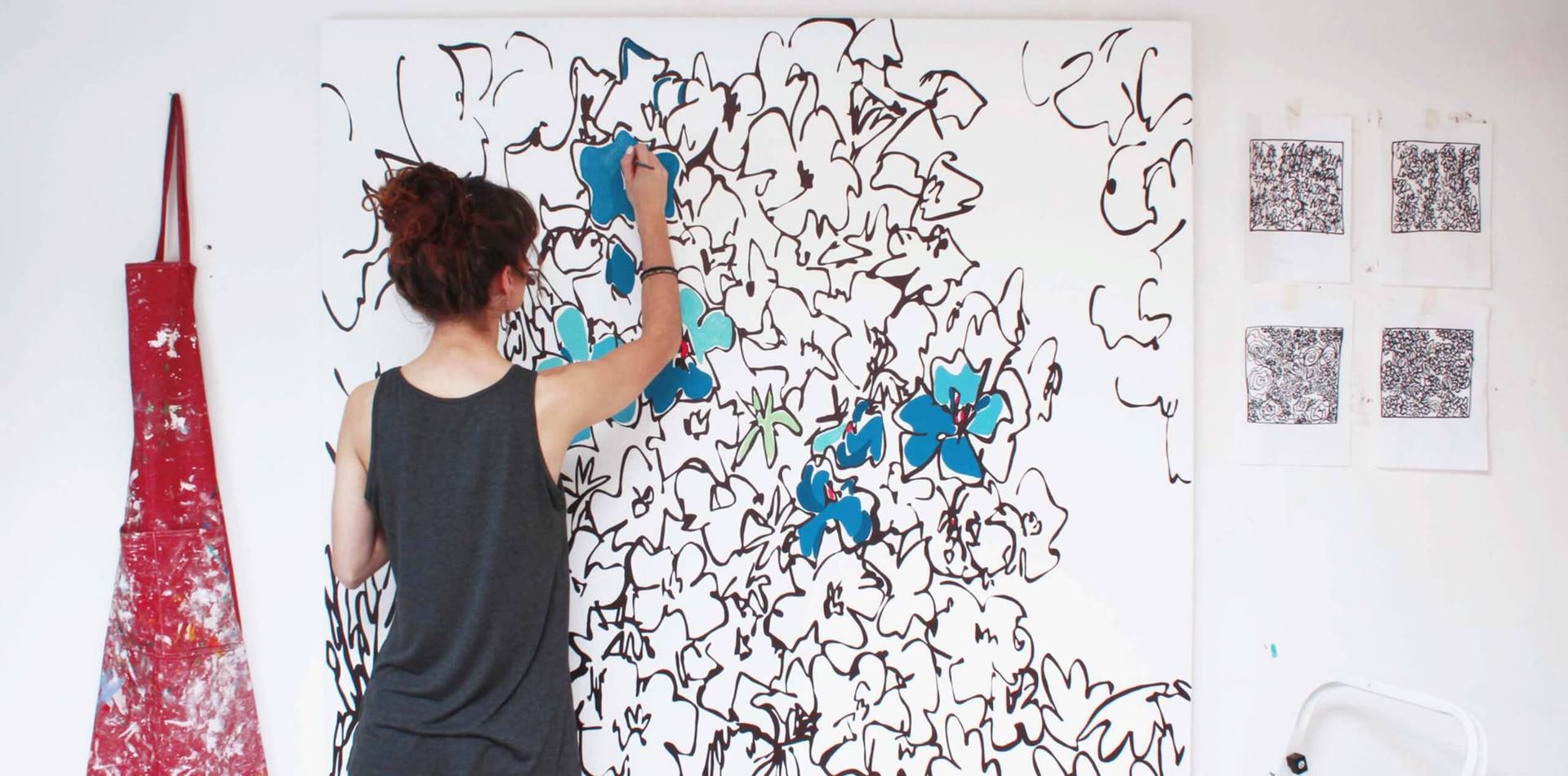 I would hope to see myself still creating and still testing myself with new subject matters and disciplines. I would really like to upscale my work also as I feel most free when creating large pieces, so maybe the challenge of a wall mural! I hope to see myself in a more balanced position with more control of my brand as an artist.