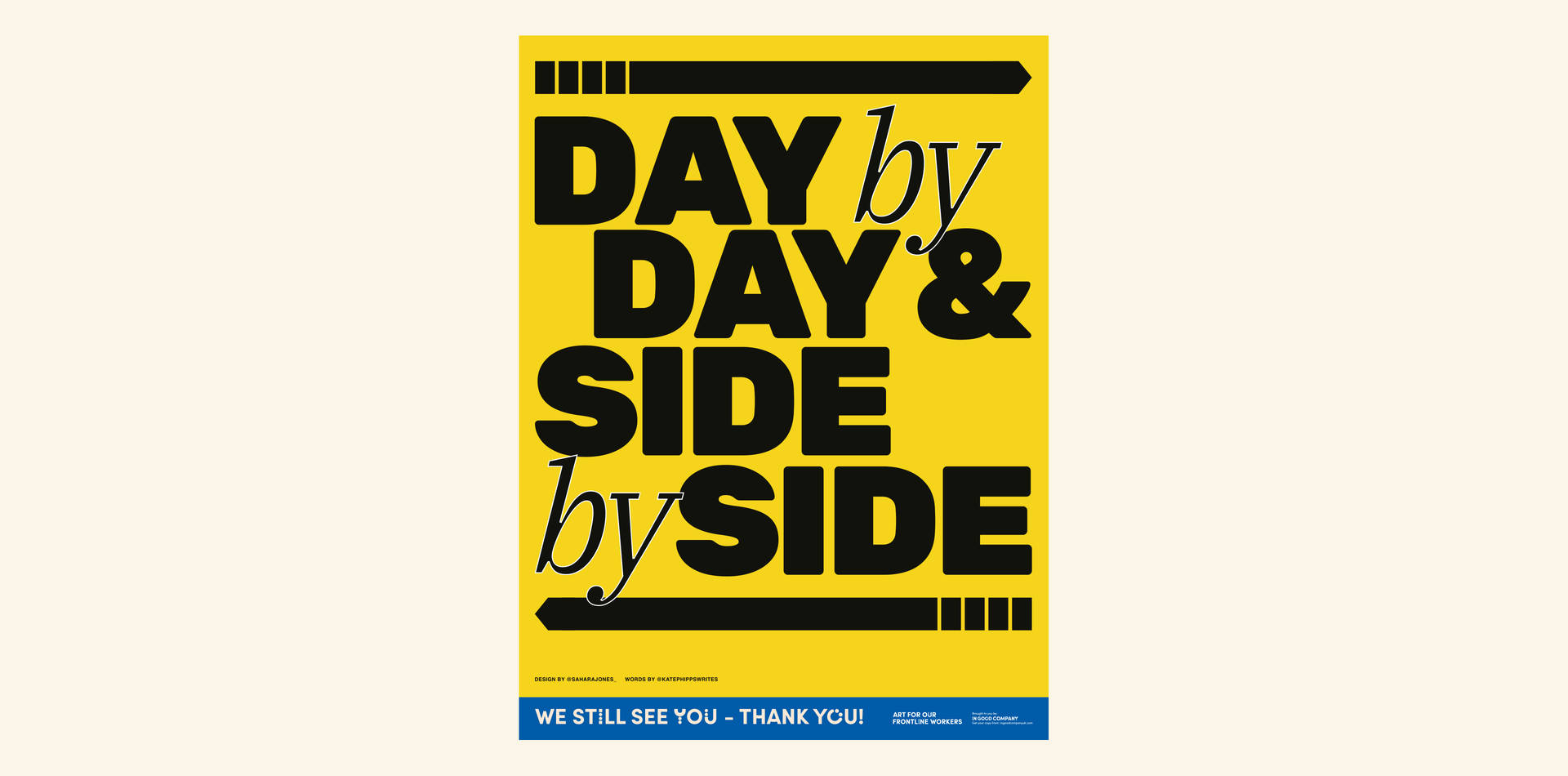 Outside of her day job, Sahara is passionate about working on personal projects and creating design for good causes she believes in, often using typography and visual identity projects as a way to speak out and start conversations. This interest has led to opportunities such as, designing the identity for The Black Report — the first comprehensive report on black start-up founders in the UK. She took part in a design collaboration with HUMAN \, an initiative which aims to build an open-minded community around mental health awareness. They work with creatives to produce artworks through different mediums that raise money for mental health charities. Sahara was also recently selected as one of the nineteen creatives by In Good Company Leeds to create a poster design helping to raise funds for frontline19.com. As she tells us, “I don’t think I ever imagined seeing my work on a billboard for a much-needed charity. It’s just a crazy thought that the work I do in my living room can contribute to much larger conversations that are happening in society.”