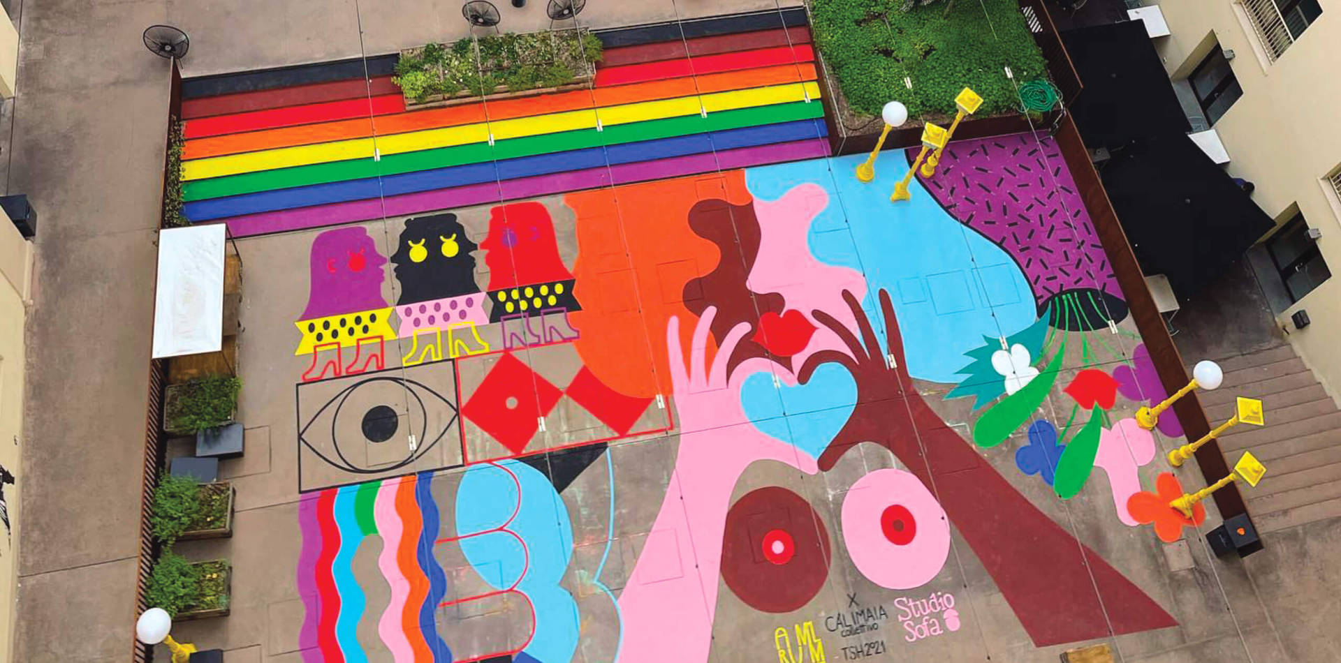 We are very happy to have been involved in the realisation of the murals in the courtyard of the ‘Student Hotel Firenze’ for Pride Month 2021 – working with an all-female team! We had wanted to throw ourselves into a project of this type for some time and it was very exciting as it was our first experience working on such a large-scale project. The work will remain visible for a whole year and will be the stage for many interesting events proposed by the client. We hope that this project will open up doors to new urban art commissions related to important social issues like this one, this is very important to us.