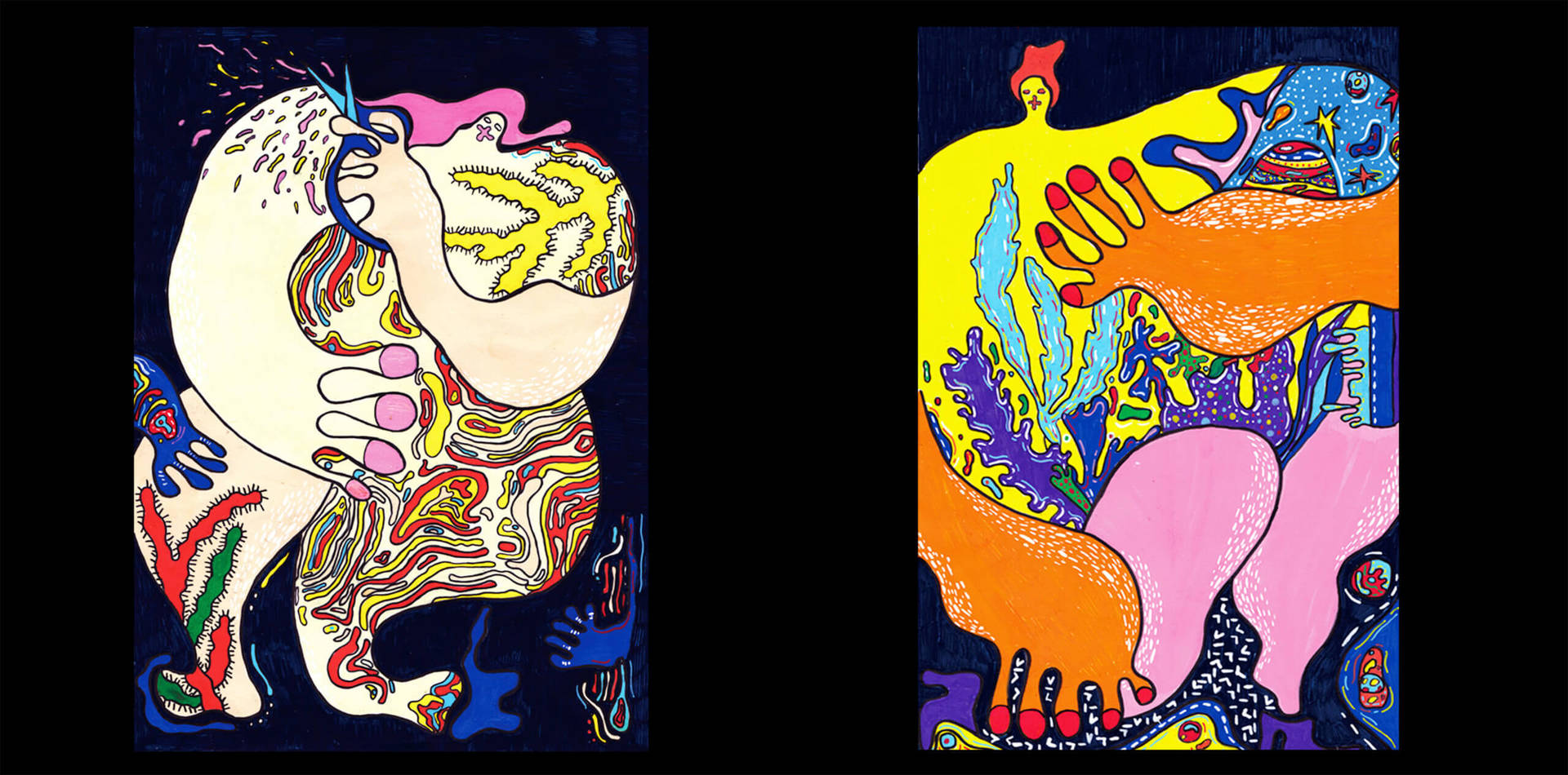Amber Vittoria has most inspired my works, who is an artist working in New York City. Her works focus on femininity and the female form, leveraging physical traits such as overtly extended limbs and rounded features. She uses unconventional and exaggerated expressions to design female bodies in her works. Her artworks are part of my inspiration for this work.